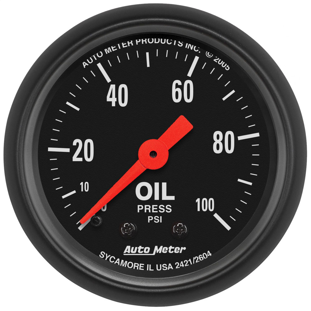 Auto Meter Engine Oil Pressure Gauge 2604; Z Series Oil Pressure 0 to 100 PSI 2-1/16 in. Full Mechanical