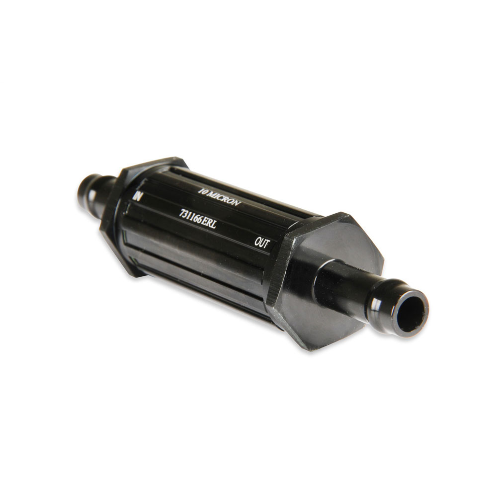EARL’S Fuel Filter 731166ERL; Vapor Guard 3/8 in. Hose Barb 10 Micron Black Anodized Aluminum