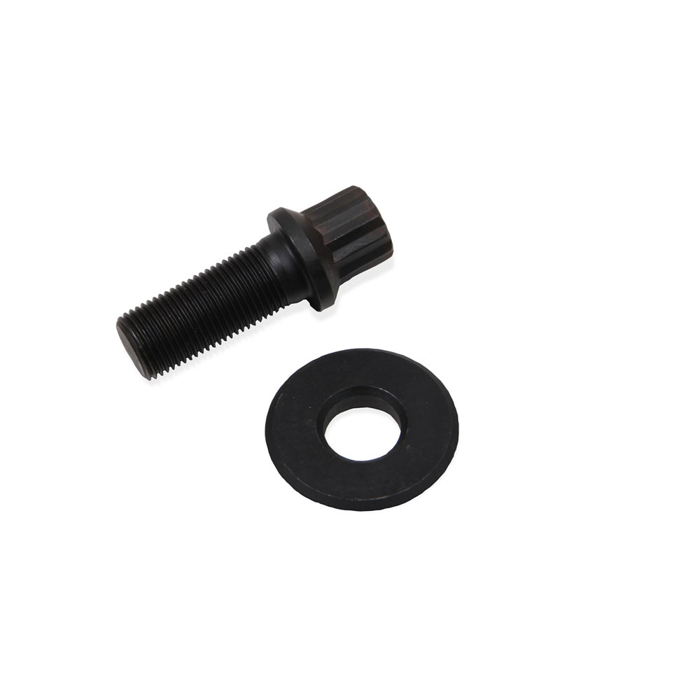 Earl's harmonic balancer bolts are made from high quality chrome moly steel with 180,000 PSI rating. The extra-tall 12-point bolt head won't strip or allow the socket to slip-off when turning over the engine. Includes extra thick large diameter washer. Bolt and washer are black oxide coated.