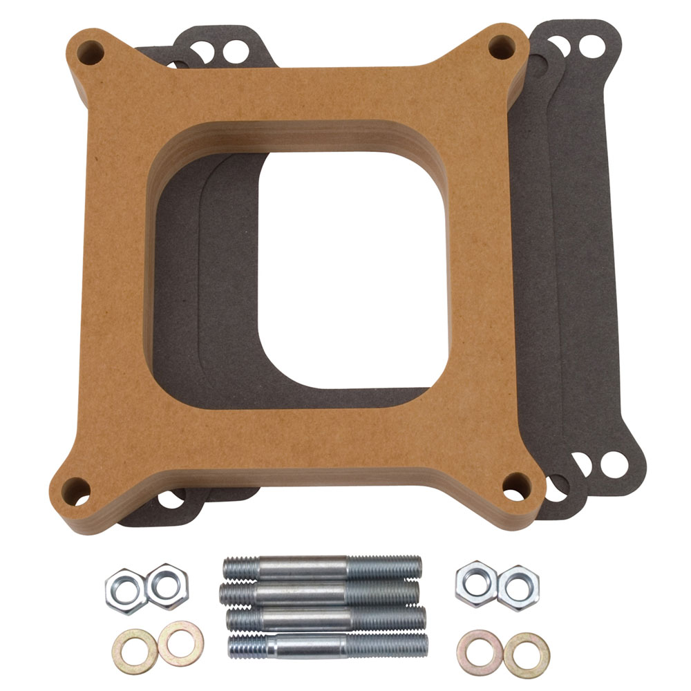 Edelbrock Carburetor Spacer 8720; 4150 Square Bore 1 in. Open Natural Wood Fiber Laminate
