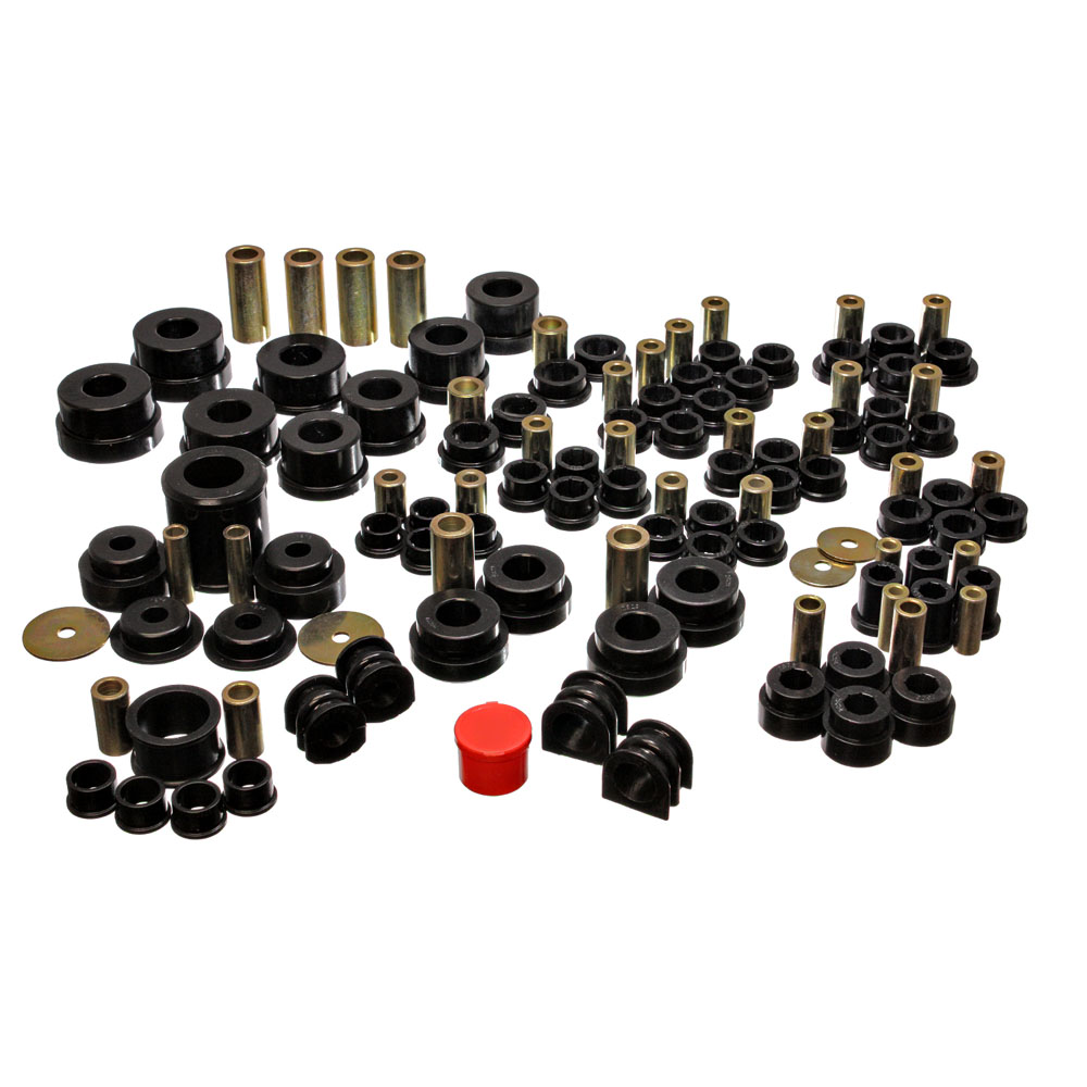 Energy's Hyper-Flex is superior performance polyurethane which has proven itself under the most demanding conditions on the race track, off-road and street performance driving, Hyper-Flex components do not wear or deteriorate from exposure to undercar chemicals such as oils and coolants and withstand atmospheric conditions like UV exposure and pollutants. Impervious to these elements, Energy's Hyper-Flex components are a great value. Not only will it outlast rubber 5 to 1 but are a cost effective performance improvement for your car or truck. Whether domestic or import, front, rear or 4WD, old or new, your vehicle will achieve that level of performance that has made Energy Suspension the most asked-for name in performance polyurethane components. All Hyper-Flex components are proudly Made in America and are available in red or black.