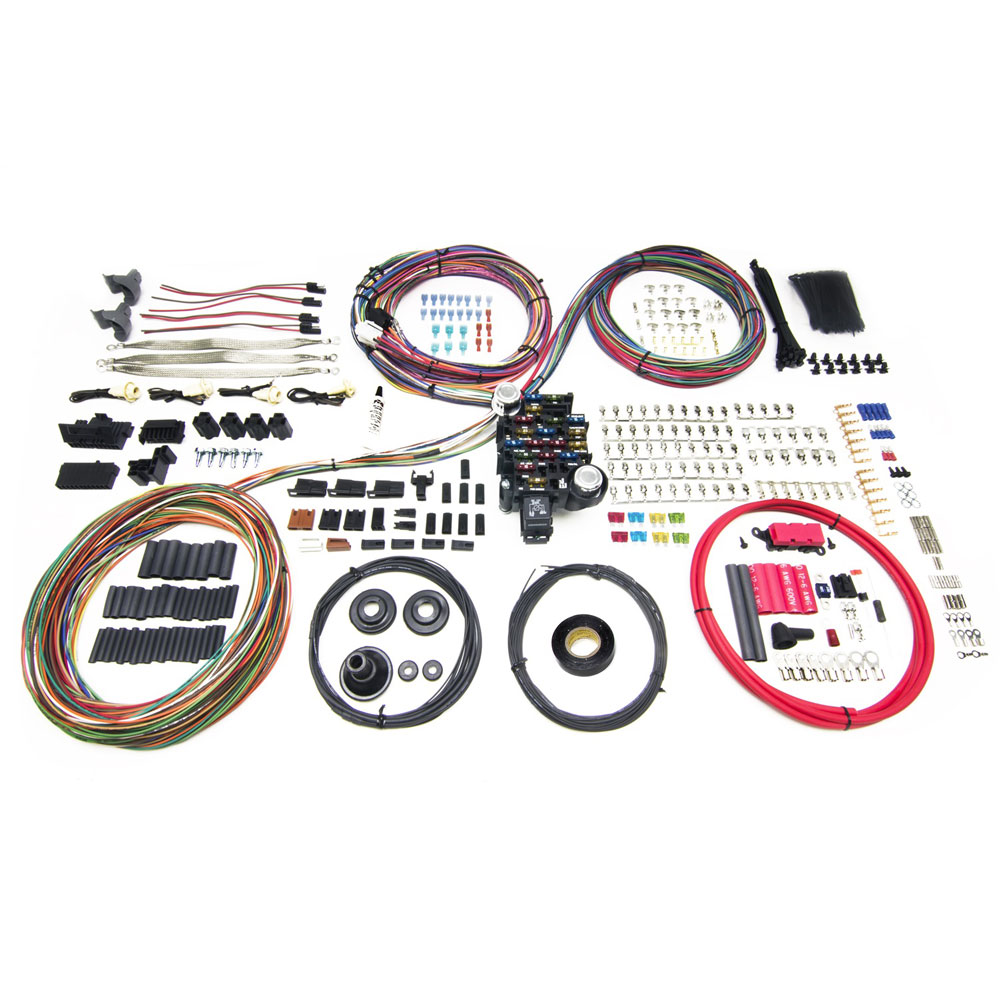 The Painless Pro Series gives you everything you need to wire up your pro-touring or custom ride right the first time! Ample length is provided for each circuit, providing you the freedom to route and hide your wiring how you choose. Once you've got the harness fit how you like it, included are over 25 GM factory style connectors found on most "˜60s to early "˜90s GM switches, allowing you to turn the Pro Series harness into a direct fit harness for your application. LED ATC bladed fuses get you away from the old hard-to-find glass fuses, and will light up if blown making troubleshooting a painless task. The 6 gauge charge wire and midi fuse (no more problematic fusible link!) will keep up with today's high amperage alternators, and the provided front and rear ground harnesses making grounding your lighting circuits a breeze! Provided with many GM connectors and terminal, insulated and non-insulated butt splices, heat shrink, grommets, cable ties, ground straps, and cable tie clips, the Pro Series brings a new meaning to truly Painless wiring and includes our lifetime guarantee.