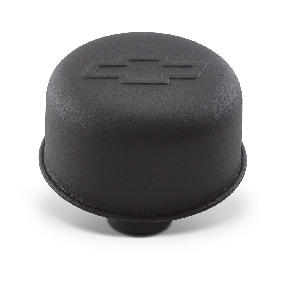 This engine valve cover breather has a 3 inch overall diameter and is 2.50 inches tall. It includes a raised Chevrolet Bowtie logo emblem on the top side. This is a push-in style valve cover breather which fits a 1.22 inch valve cover hole. Great looking black crinkle finish. This is an officially licensed GM Performance Parts product. Sold individually. Backed by a limited 30 day factory warranty.