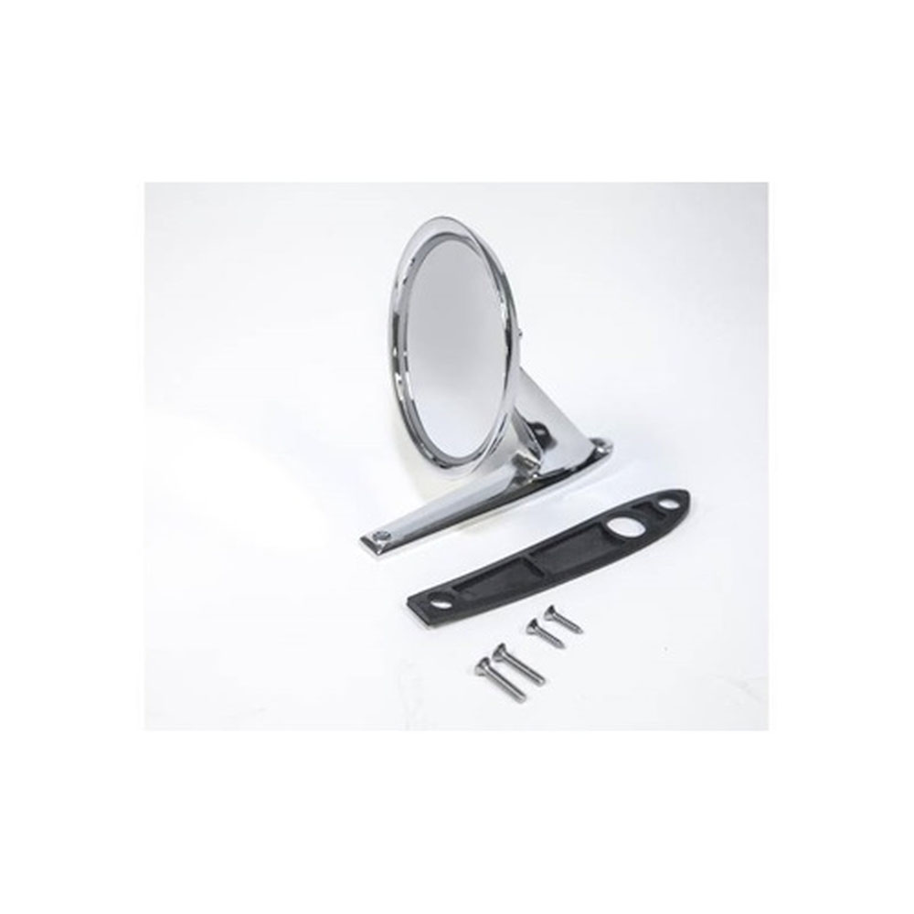 New by Scott Drake is our 1964-73 Mustang Show Quality Custom Long Base Mirror. Crafted after our popular show quality view mirror only with a longer base to cover previous mounting holes and paint lines. This custom mirror can be either used on 64-066 Cars that have predrilled holes for long-based mirrors or used on 67-069 cars that are looking for the Classic Round Mirror look over the original rectangular Mirror. This mirror is made with our Concours qualityC3RZ Head and C7AZ Base. Zinc die-cast with high polished chrome finish. Comes complete with base pad and hardware.
