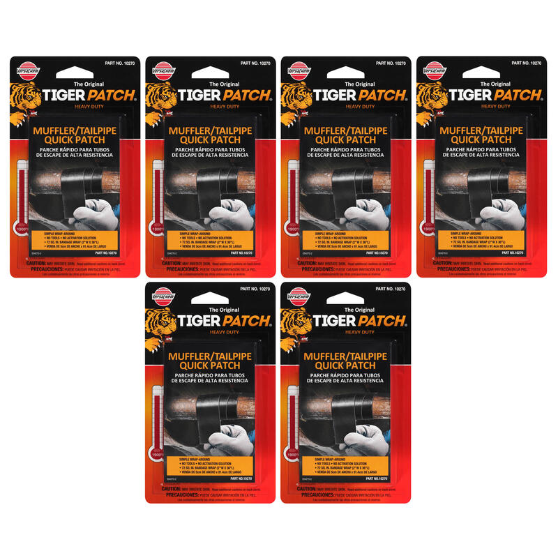 Tiger Patch: Muffler/Tailpipe Quick Patch is a simple 1 part application heat seal wrap-around tape (2"W x 36"L) that forms a strong temporary repair for mufflers and tailpipes and has a temperature resistance up to 1900°F. No tools necessary, makes a seal in minutes, and is mechanic approved.